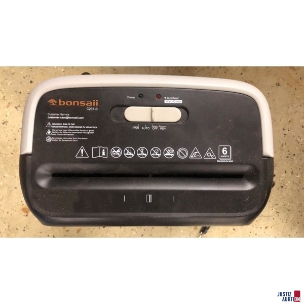Der Aktenvernichter wird in dem Zustand versteigert, in dem er sich befindet. Für Güte, Beschaffenheit, Funktionsfähigkeit wird keine Gewähr übernommen.