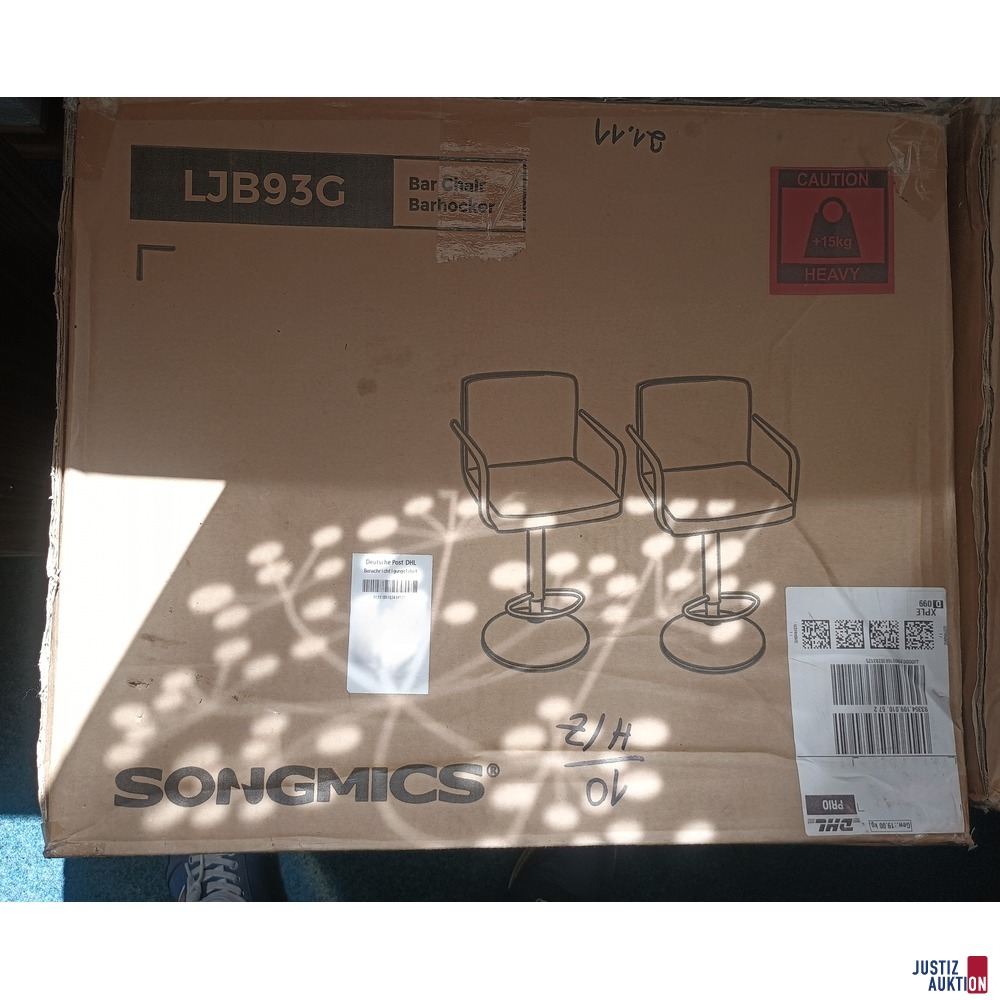 Es werden 4 Kunstleder-Barhocker der Marke Songmics LJB93G angeboten.