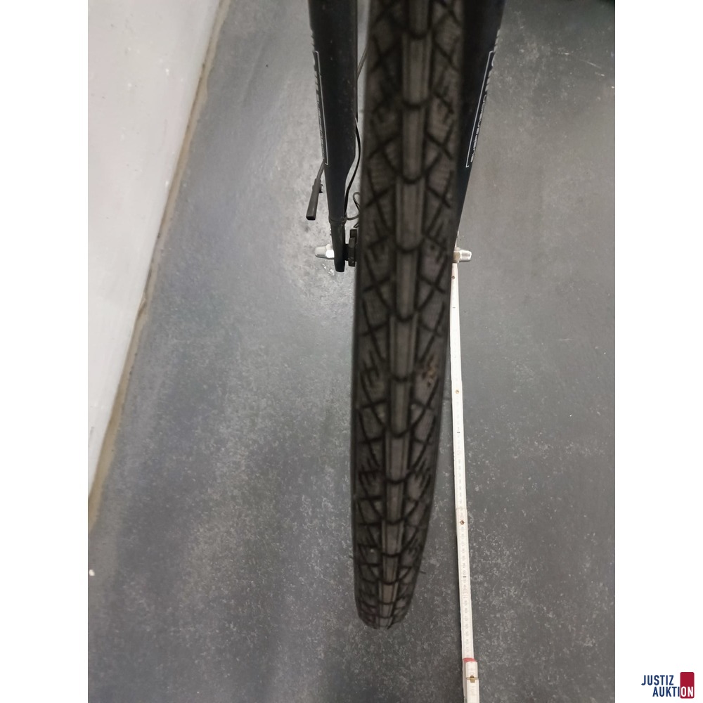 Es handelt sich hier um ein Damenfahrrad (Citybike) der Marke Gudereit in weiß. Es sind Felgenbremsen vorhanden und eine Shimano-Gangschaltung. Das Fahrrad weist Gebrauchsspuren auf.