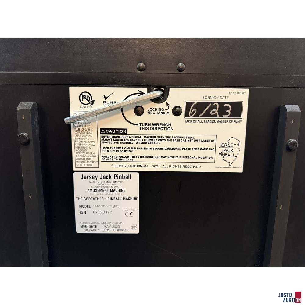 Versteigert wird ein gepfändeter Flipperautomat "The Godfather" Neupreis ca. 19.800€ inkl. MwSt. aus Mitte 2023.