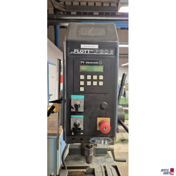 Angeboten wird eine Säulenbohrmaschine des Herstellers Flott Typ P30 STG-PV, Baujahr unbekannt (ohne Zubehör)