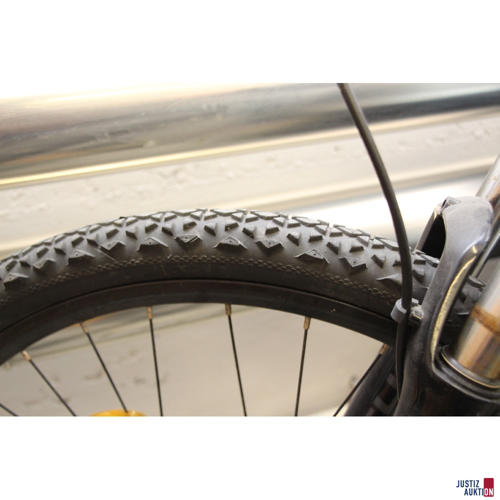 Zum Verkauf steht ein gebrauchtes Fahrrad der Marke Focus mit Gebrauchsspuren.