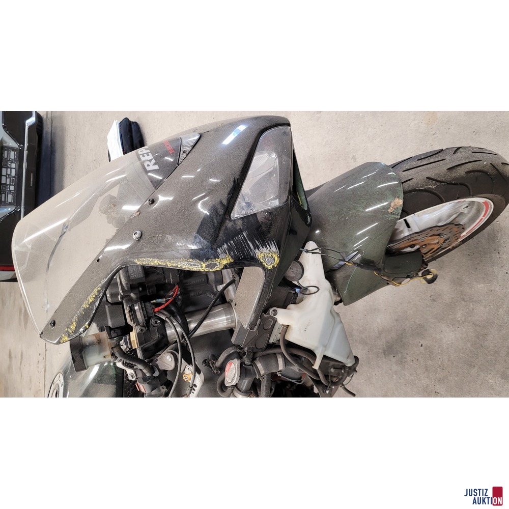 Es sind offensichtliche Unfallschäden beidseitig sichtbar. Die Verkleidung ist teils gebrochen und zerkratzt. Die Tankabdeckung gebrochen. Schäden an tragenden Teilen können nicht ausgeschlossen werden.