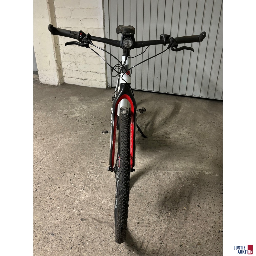 Fahrradcomputer und Ladegerät für den Akku sind nicht vorhanden; die Reifen sind platt