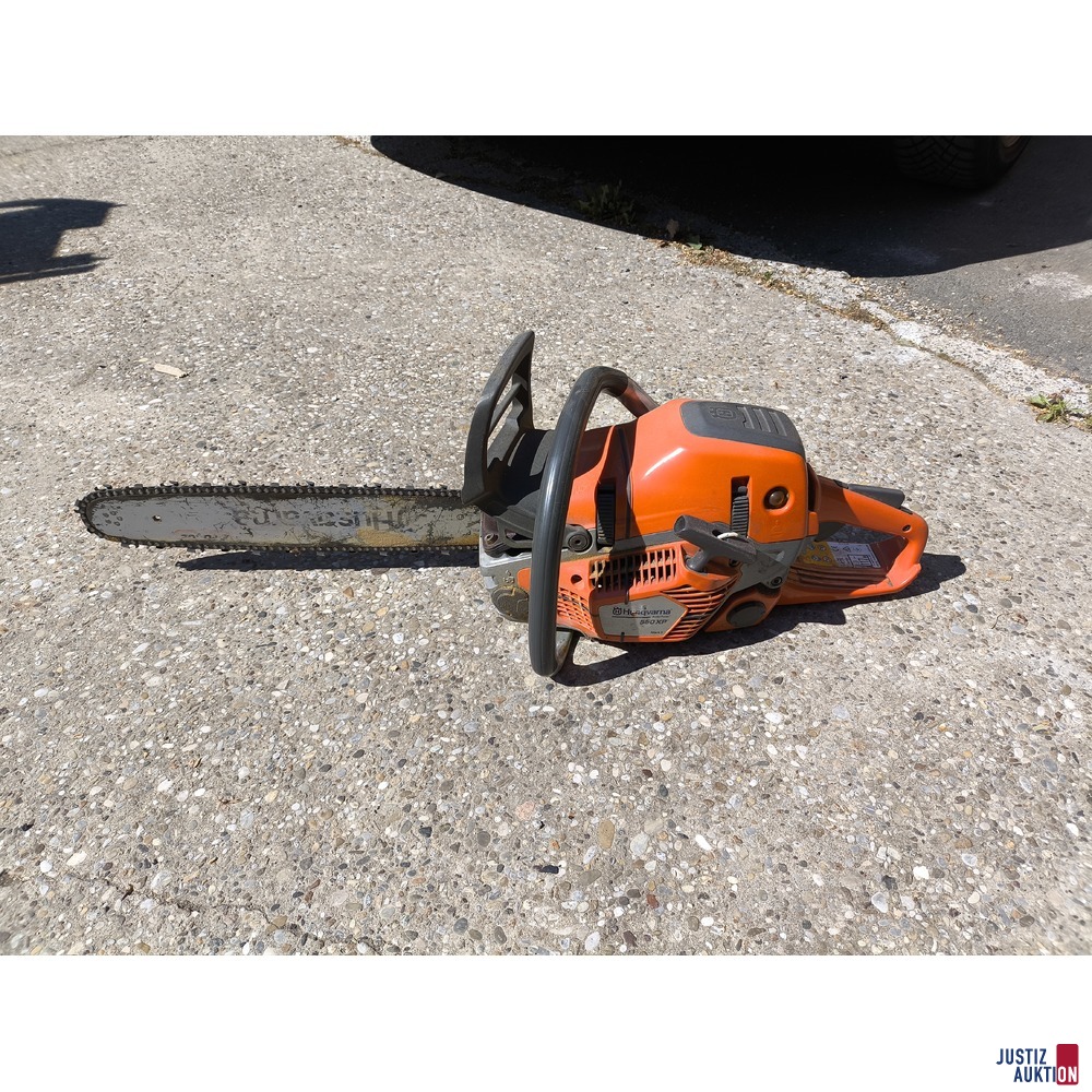 Versteigert nach Zwangsvollstreckungsrecht wird eine Benzin-Kettensäge der Marke Husqvarna, siehe Fotos.