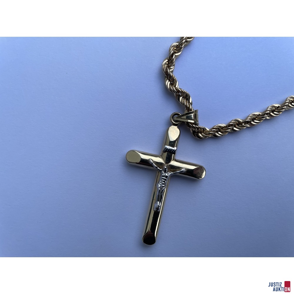 Kordelcollier (hohl) in 60 cm mit Anhänger Kreuz in 585/-Gelbgold