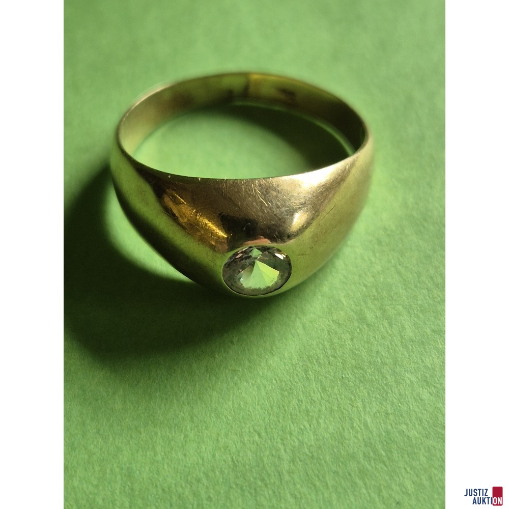 ein Ring in 585/000 Gelbgold mit einem weißen Stein – Zirkonia