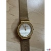 Uhr der Marke Skagen, goldfarben mit Steinchen im Ziffernblatt, Defekte am Armband sichtbar, Zifferblatt weist Kratzer auf, Uhr läuft aktuell nicht