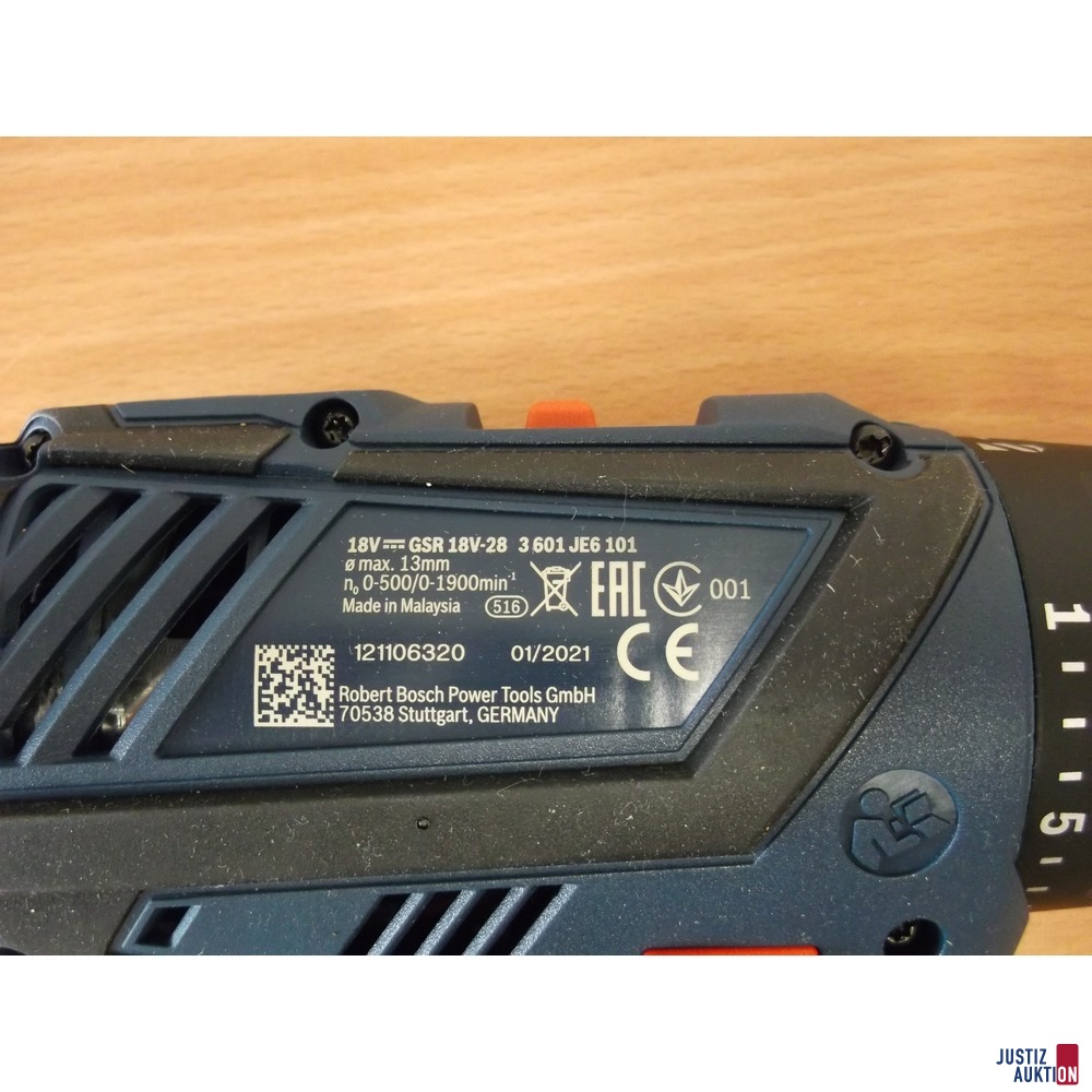| Beschreibung | Angeboten wird ein "blauer" BOSCH Professional Akku-Bohrschrauber - Akku-Bohrschrauber ist gebraucht (hergestellt lauf Aufdruck: 01/2021); und ein Seitenschneider: Bitte beachten Sie die ausführlichen Fotos. Bei Erwerb eines weiteren Werkzeuges bei der Staatsanwaltschaft Zwickau, welches zeitgleich eingestellt ist, entfällt 1 x Versandkosten.